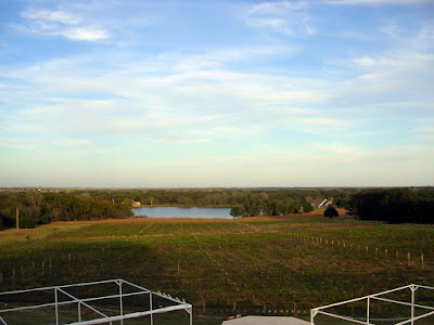 二樓陽台看出去的風景。前景是葡萄園,後面湖邊的房子是酒莊老闆的家。